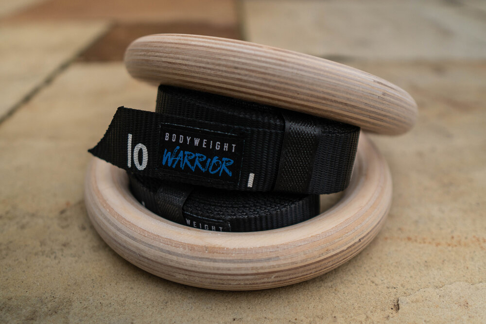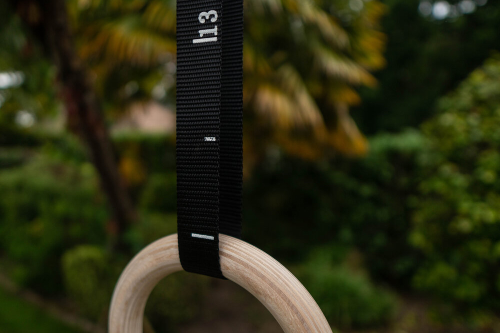 These solid wood rings are great for further developing the upper body with bodyweight strength training. They provide some instability making movements such as push-ups and dips harder but also provide huge training versatility for a multitude of other movements. The numbered adjustable straps can be used to perform chin-ups and rows, helping to increase accuracy when setting up the rings too.